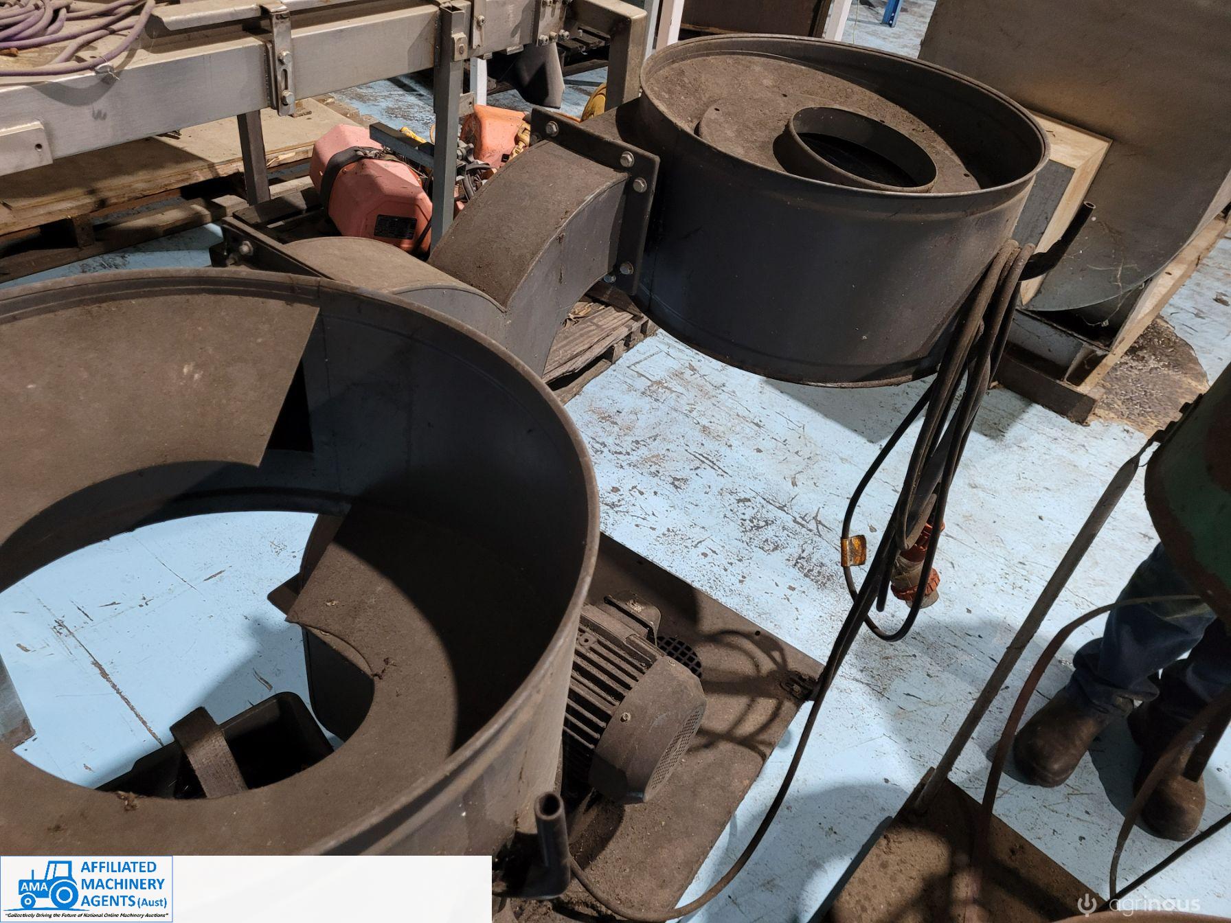 Twin Dust Extractors (No.3 - unpainted), 3 phase electric fan in working condition on trolley.