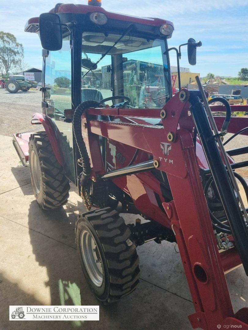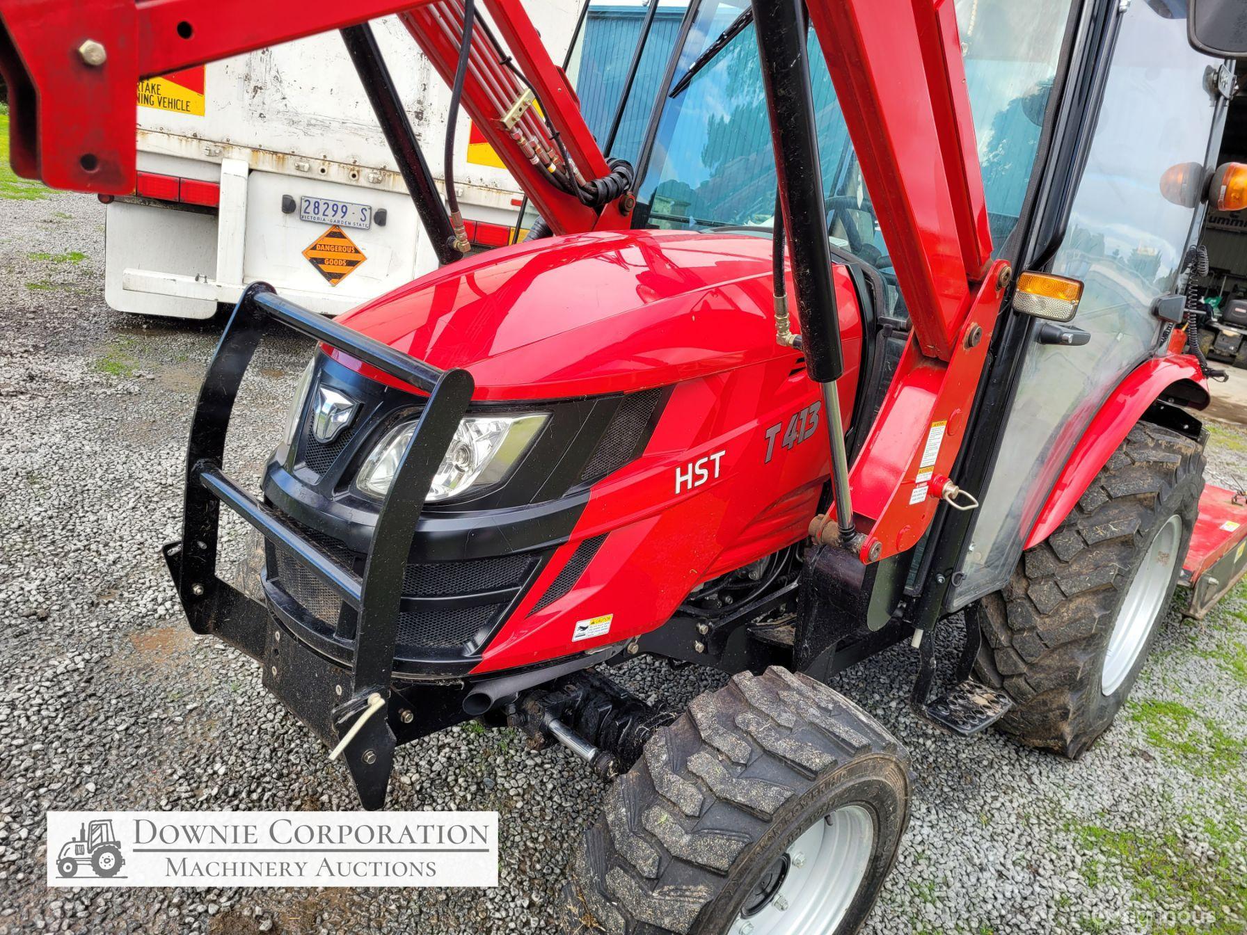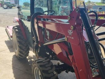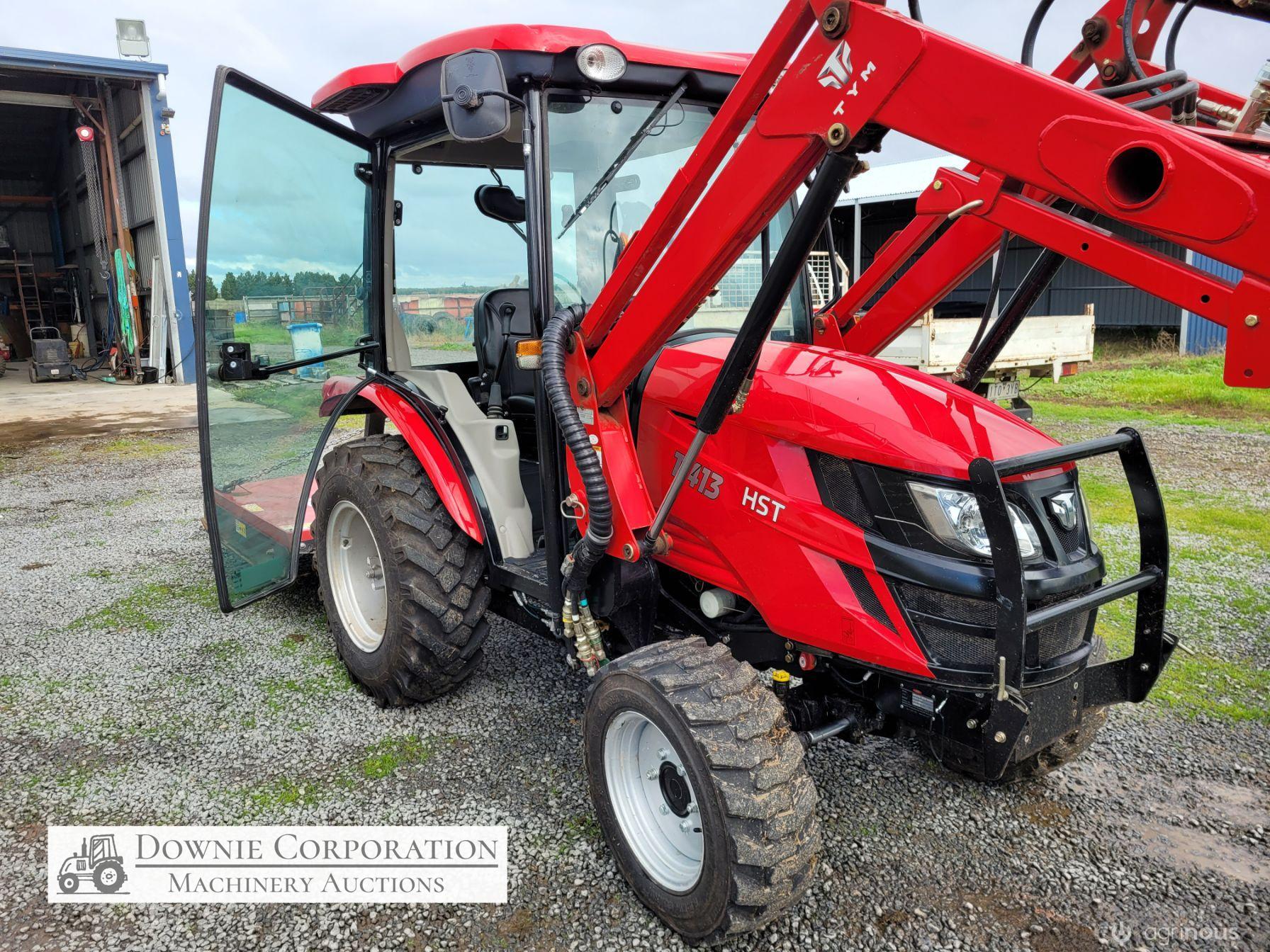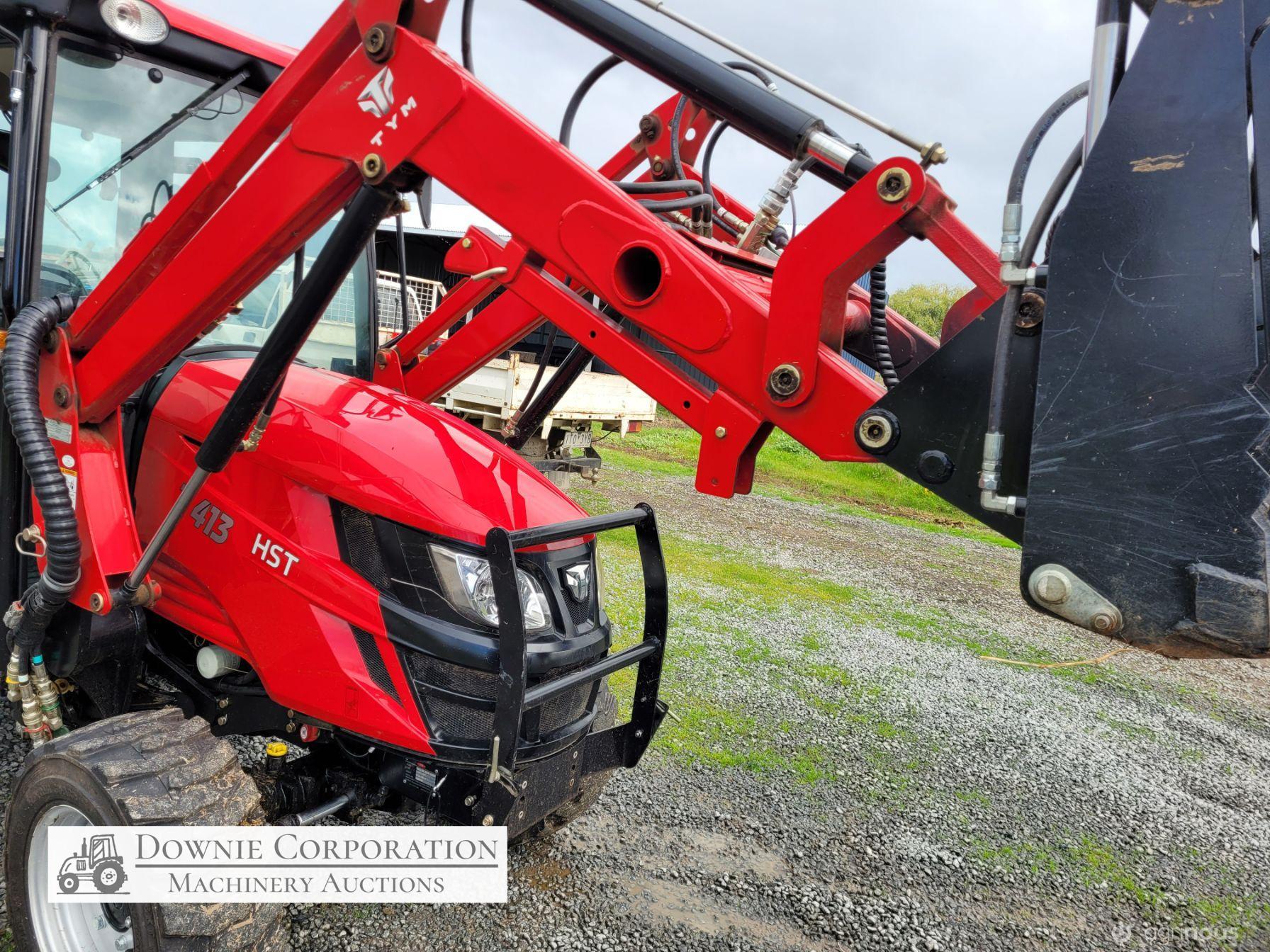 TYM T413 Tractor; 2021 model with only 145.5 Hrs; Solidly built & reliable 41 Hp tractor with 2.2Ltr 3cyl diesel engine; MFWD (4x4); Level lift FEL with 4 way bucket; Fully sealed A/c cab with heater, (smallest Hp tractor with quality cab); 2sp PTO; Hyd remotes; Currently registered. As New - Suit New Byer (only selling due to health).