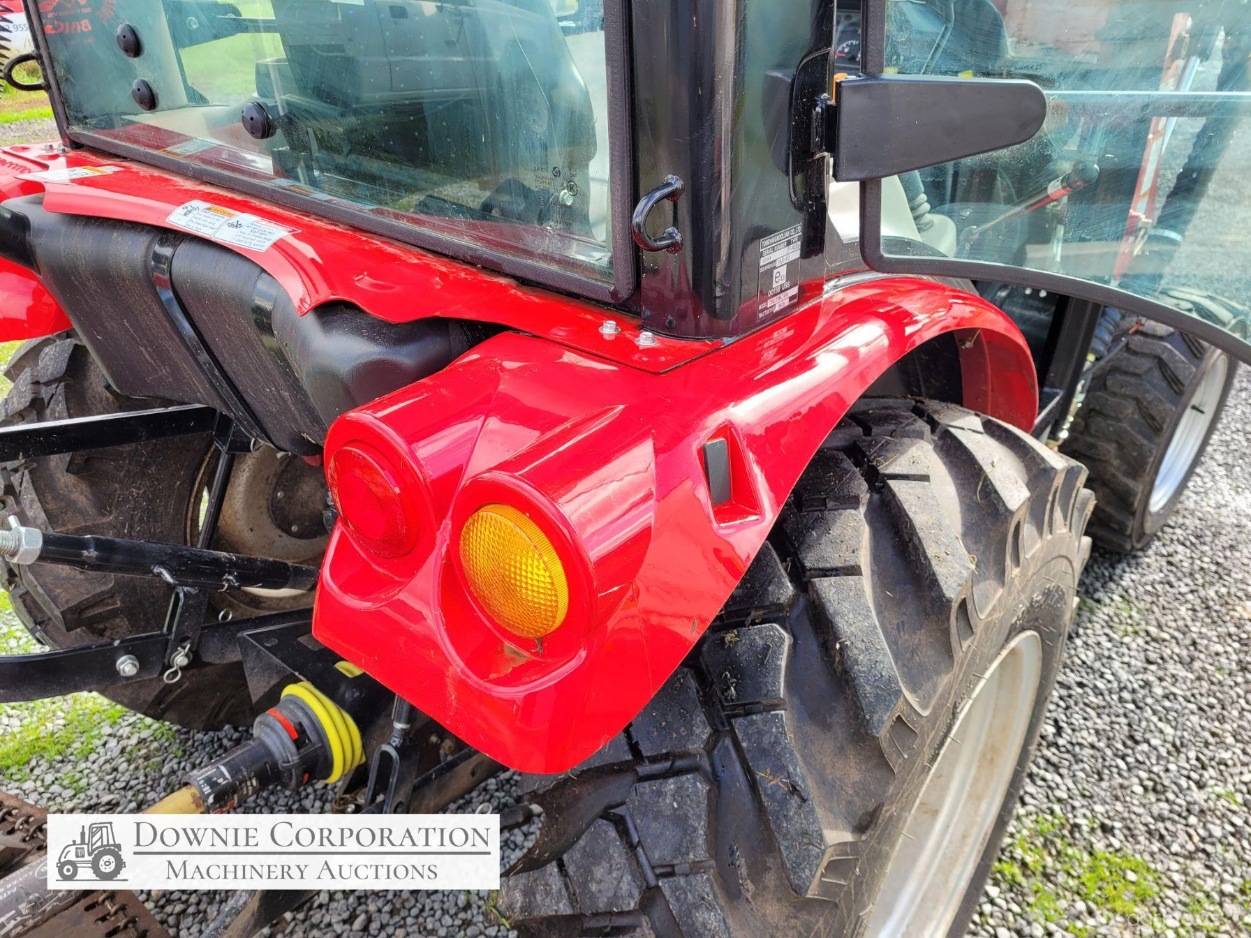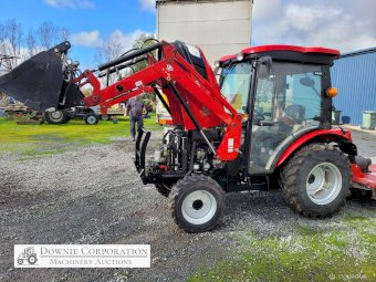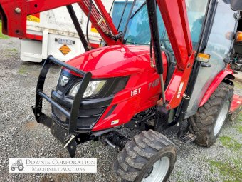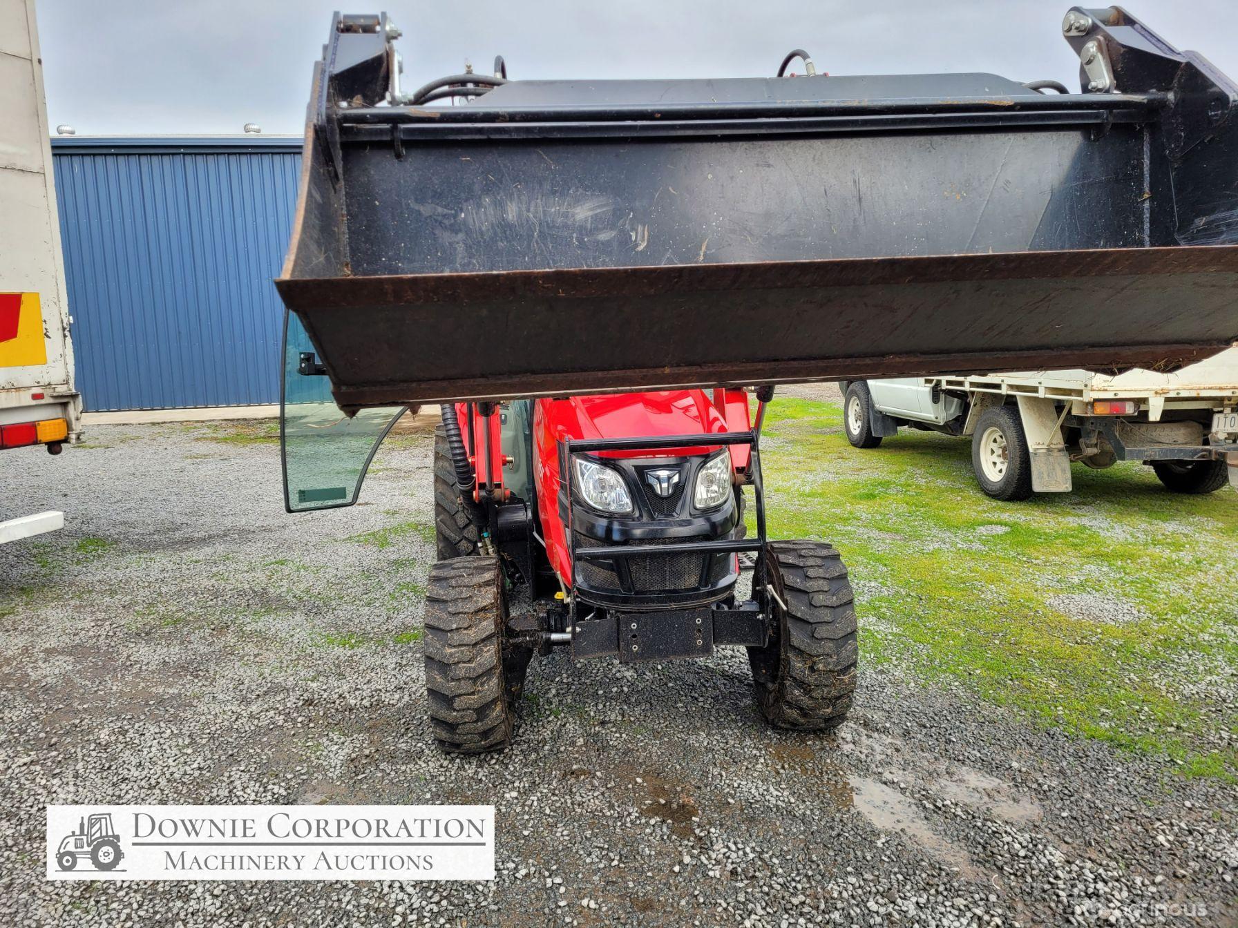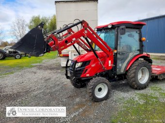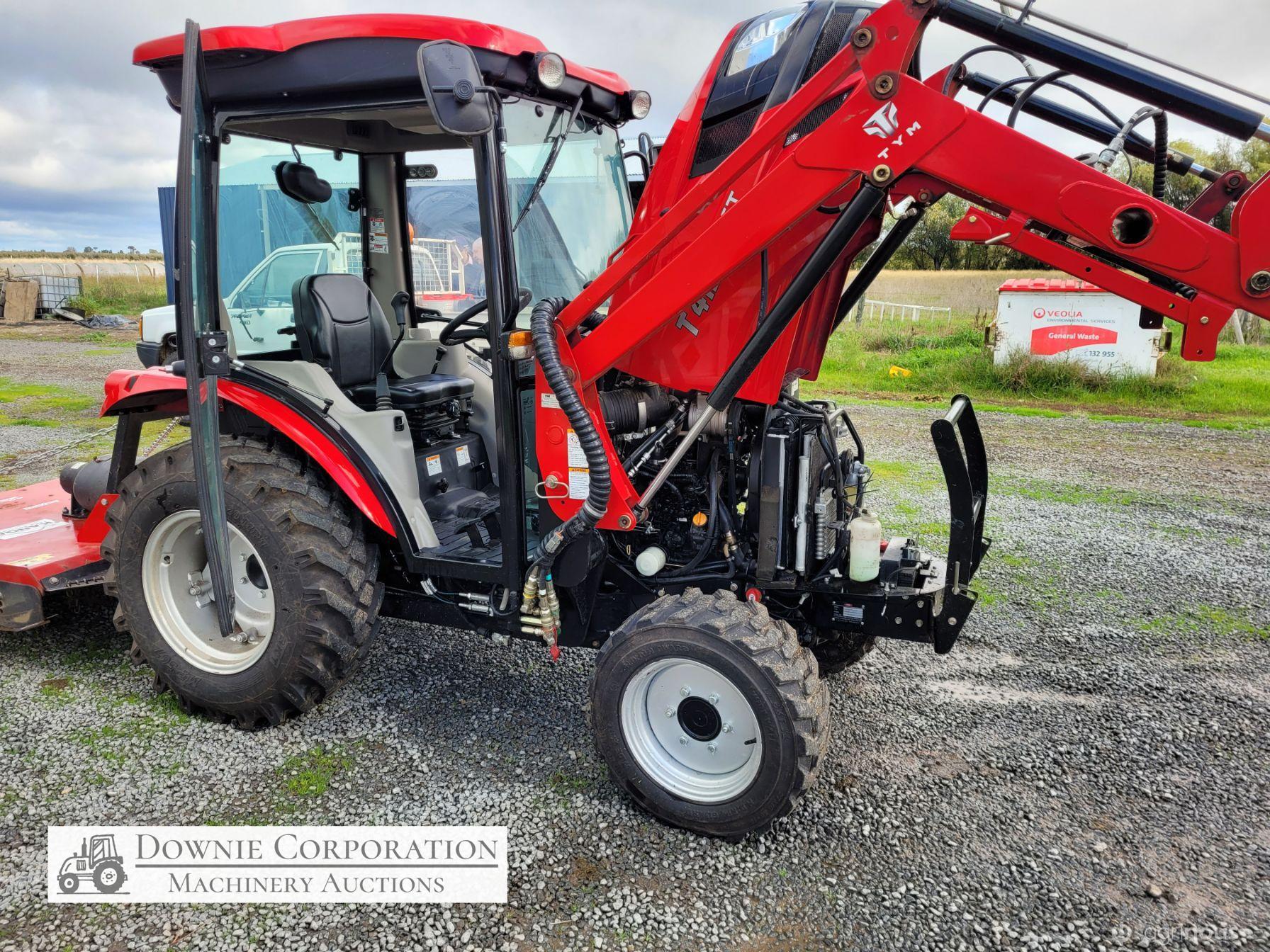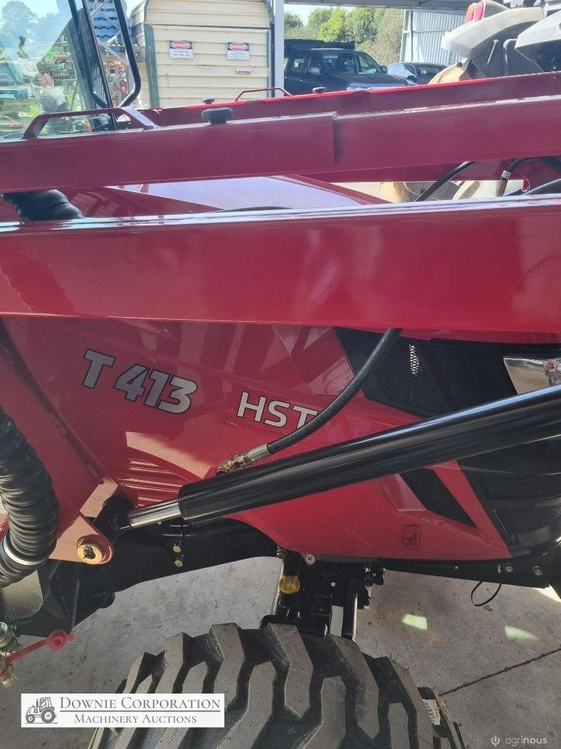 TYM T413 Tractor; 2021 model with only 145.5 Hrs; Solidly built & reliable 41 Hp tractor with 2.2Ltr 3cyl diesel engine; MFWD (4x4); Level lift FEL with 4 way bucket; Fully sealed A/c cab with heater, (smallest Hp tractor with quality cab); 2sp PTO; Hyd remotes; Currently registered. As New - Suit New Byer (only selling due to health).