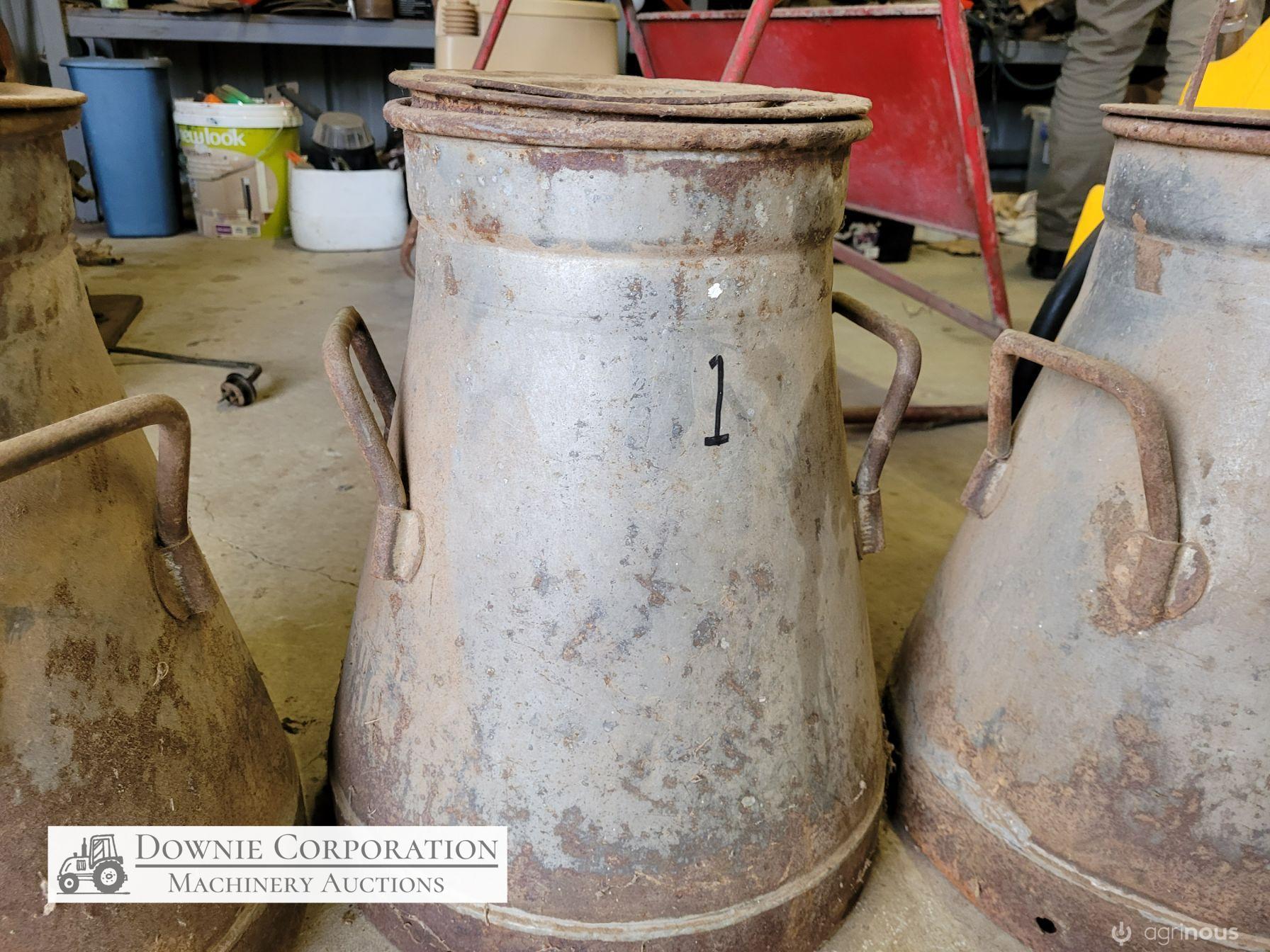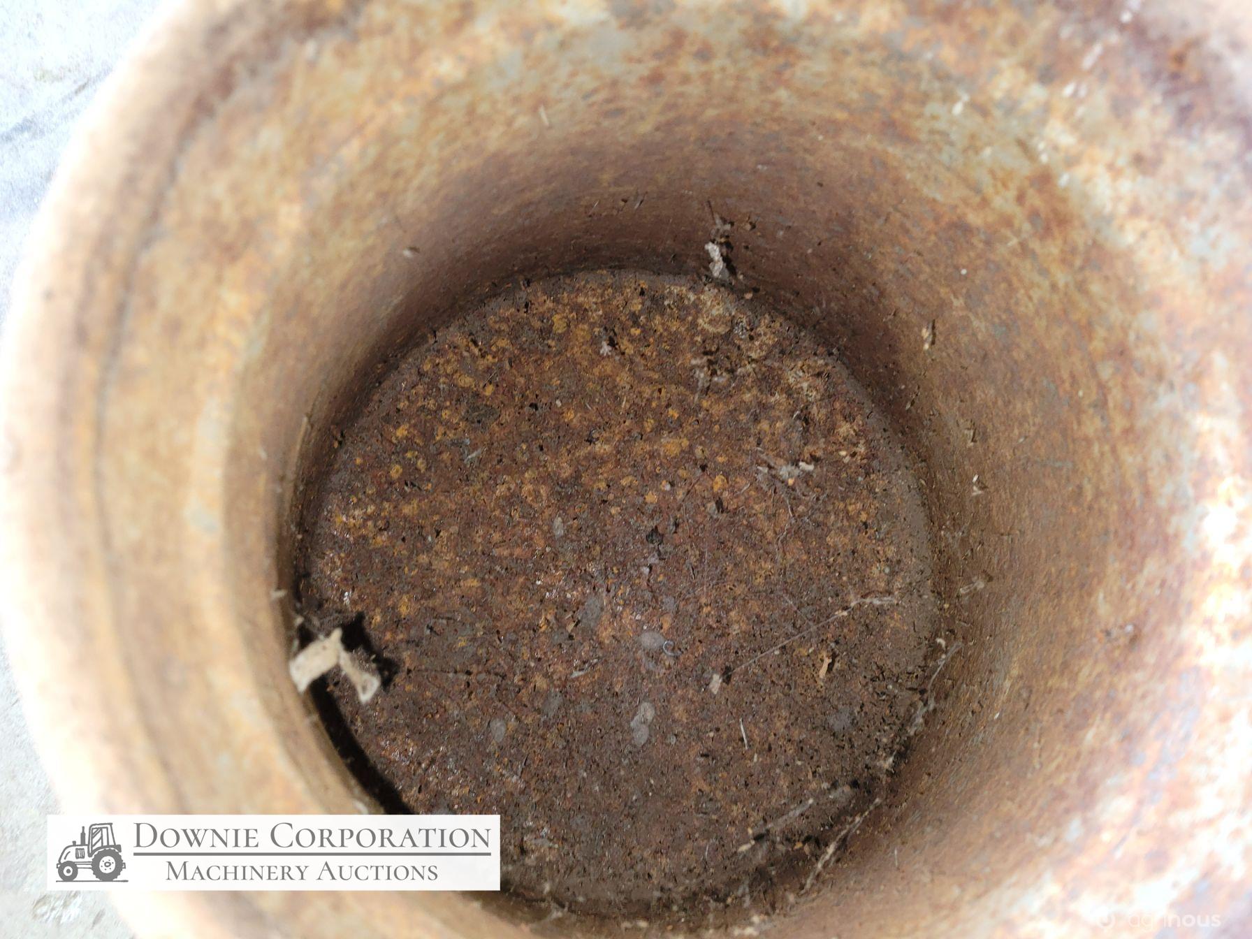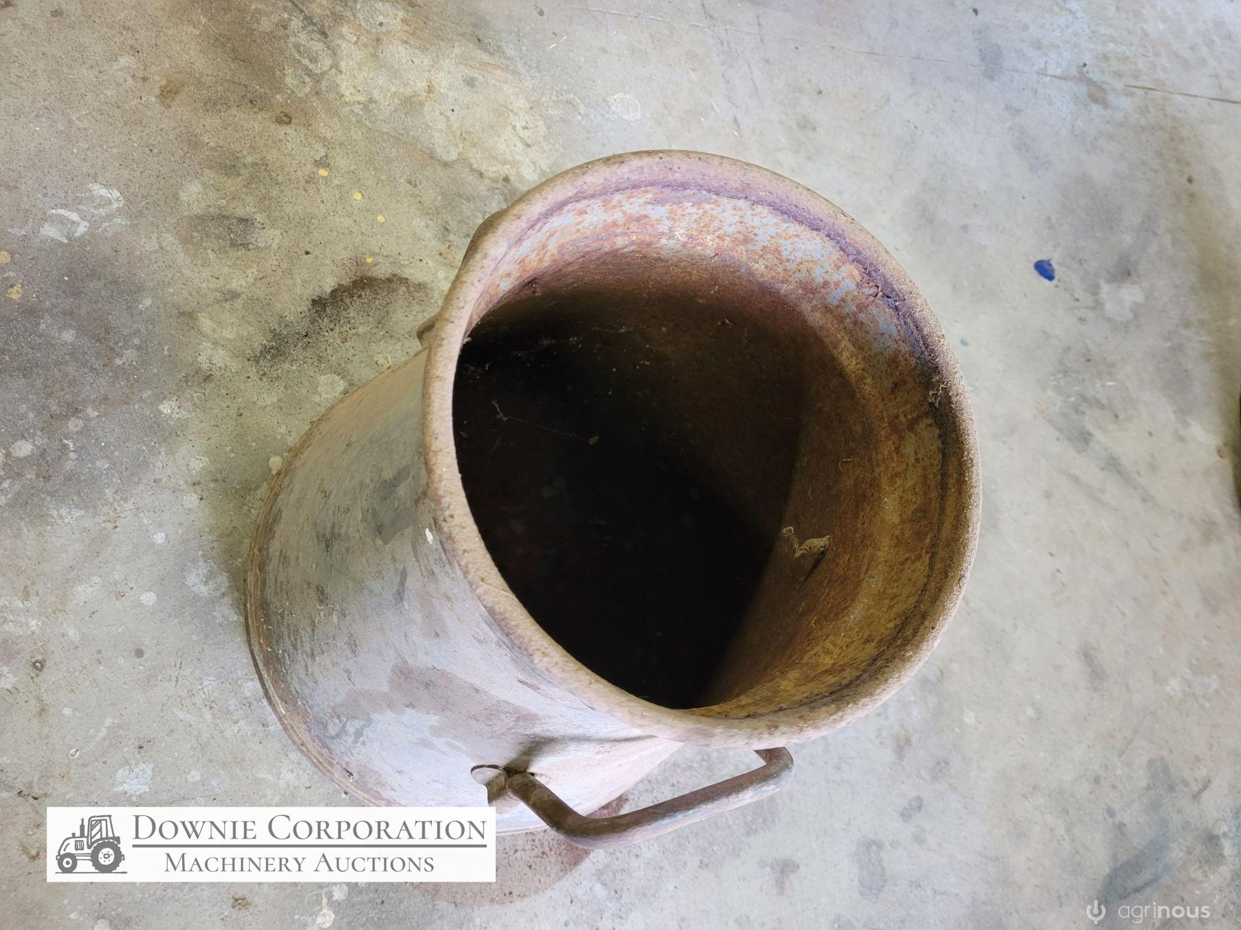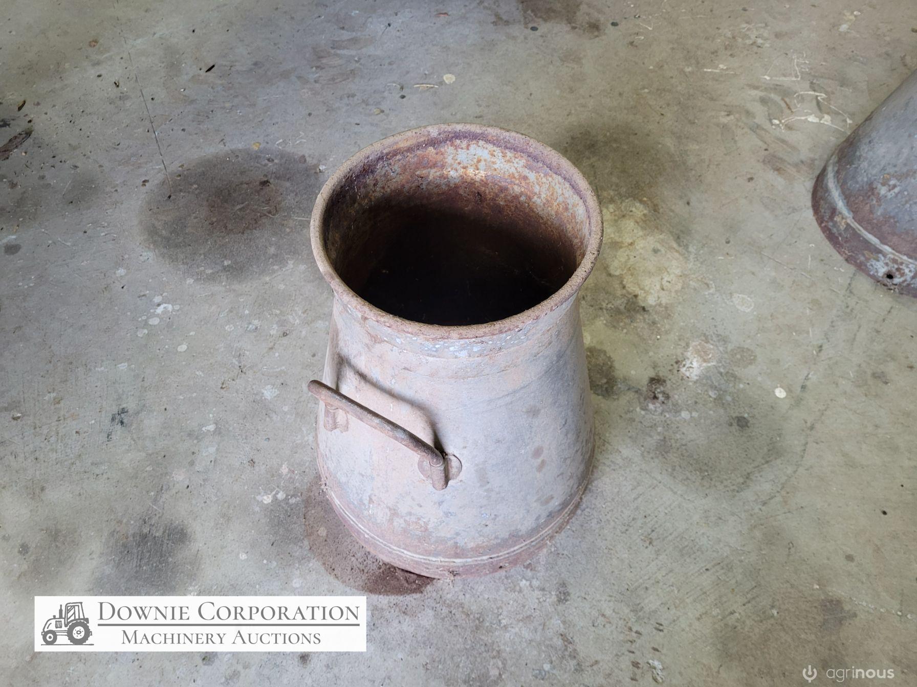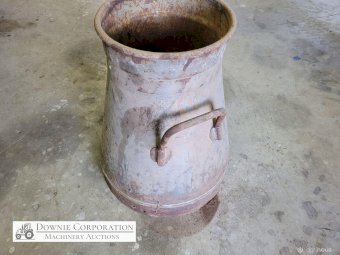Very rare & unique tapered cream can, opening 8-1/2 inches, base 14", heavy construction, only some surface rust, comes with lid. Good condition. Suit Collectors.