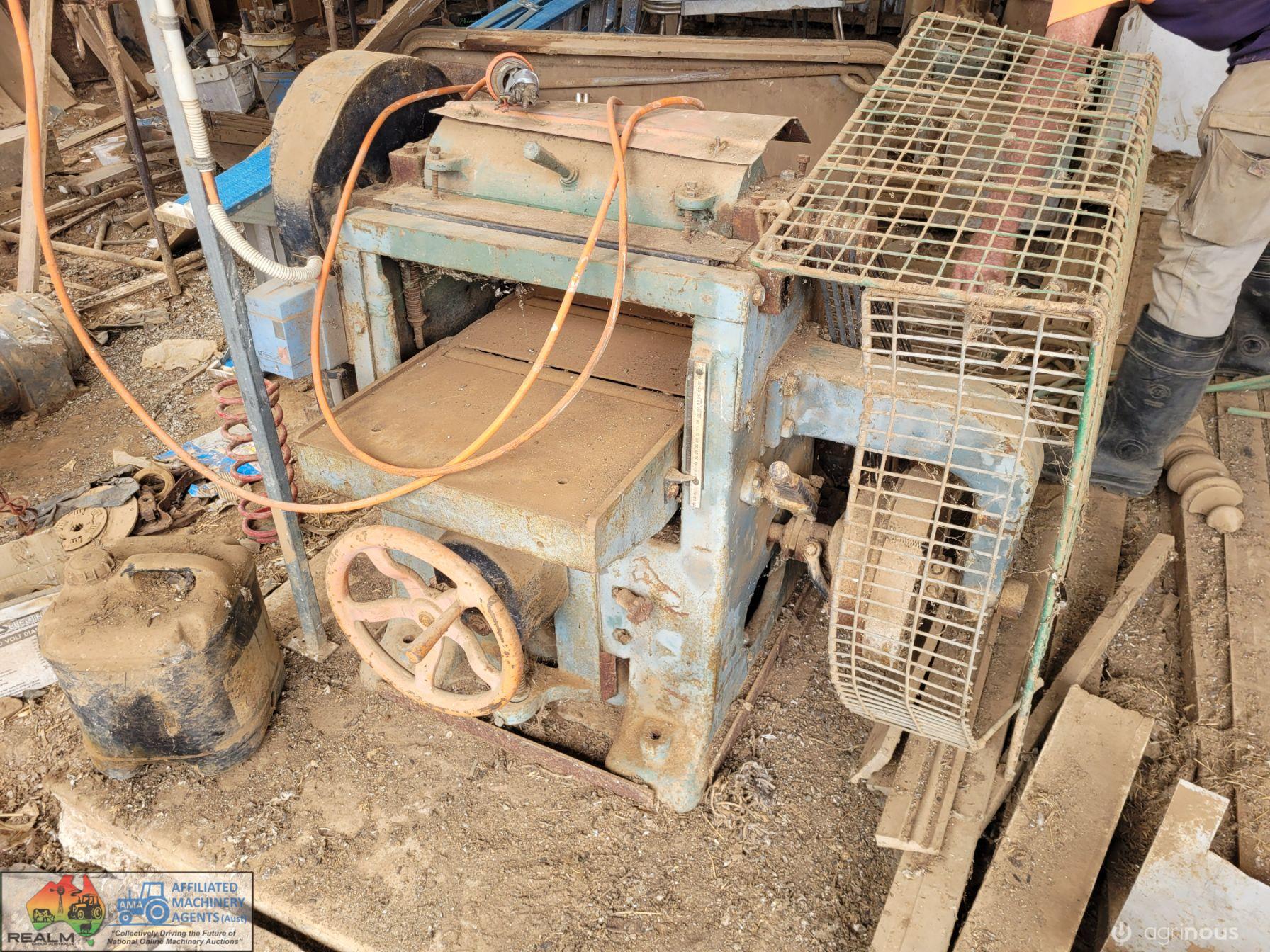 Wolfenden Bros. H/Duty Timber Thicknesser ~ 18" Wide bed ~ Adjustable thickness upto 200mm (8") ~ 240/480 volt electric mtr.